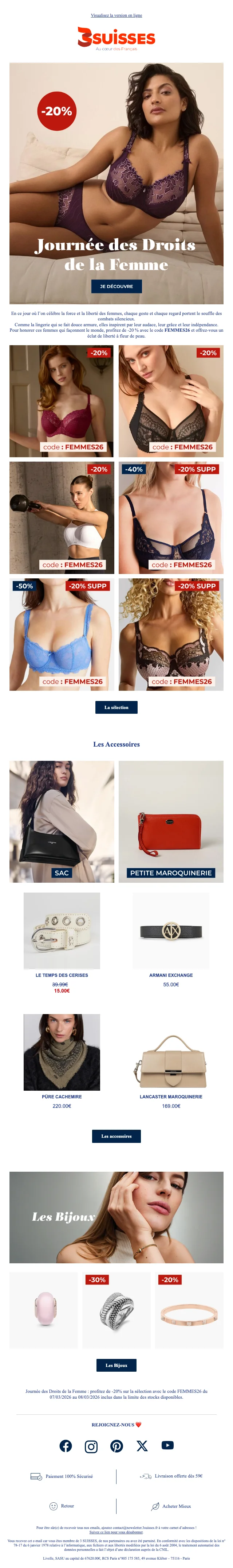 Un code promo sur l’article de votre choix à utiliser maintenant sur le site “Les 3 Suisses”.