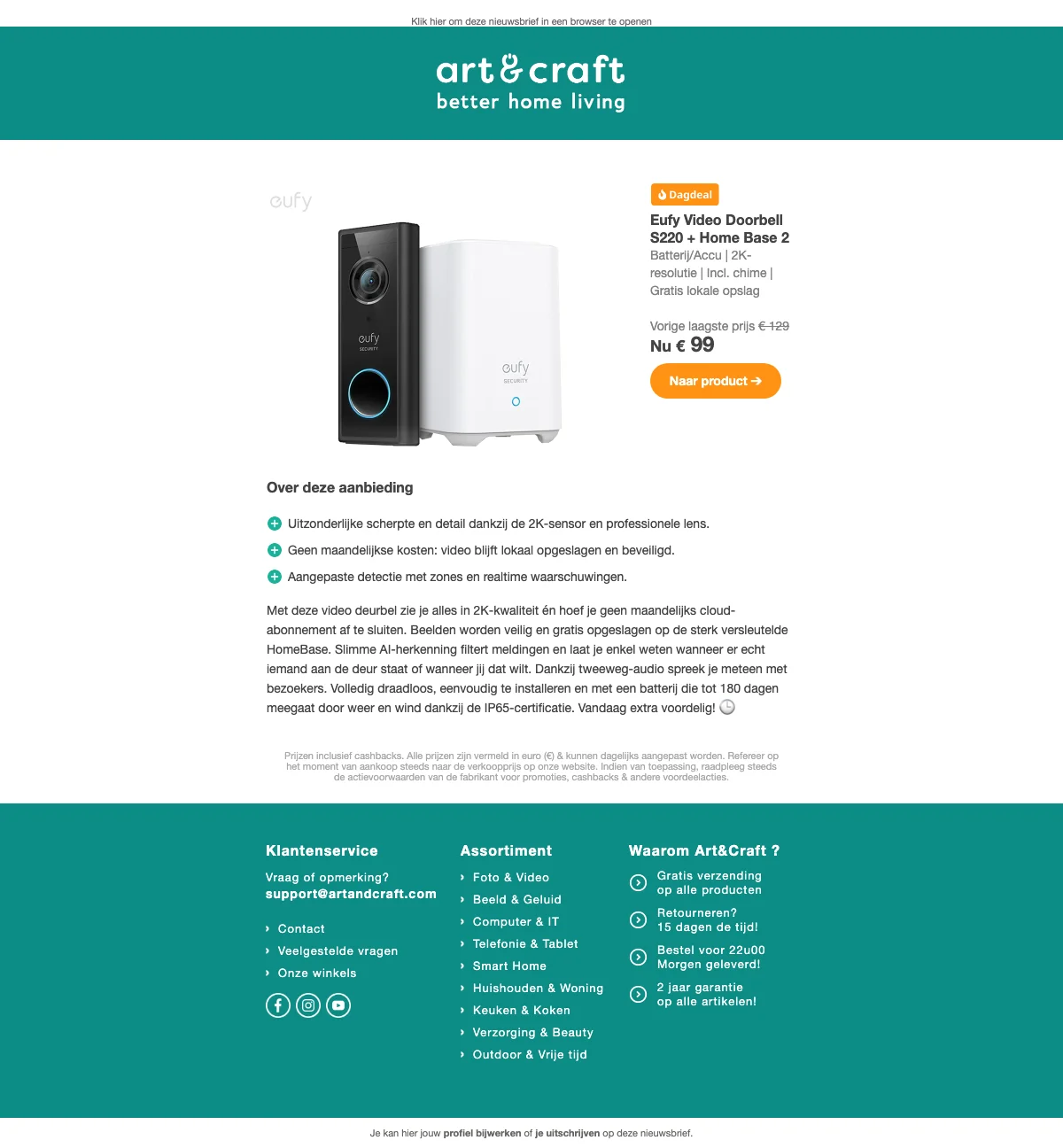 Art&Craft Eufy Video Doorbell à 99 € — 2K et stockage gratuit