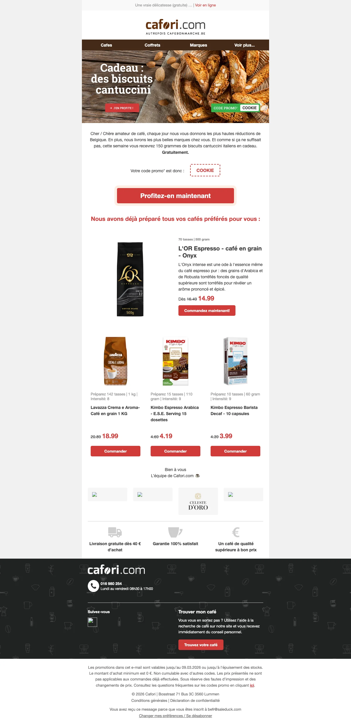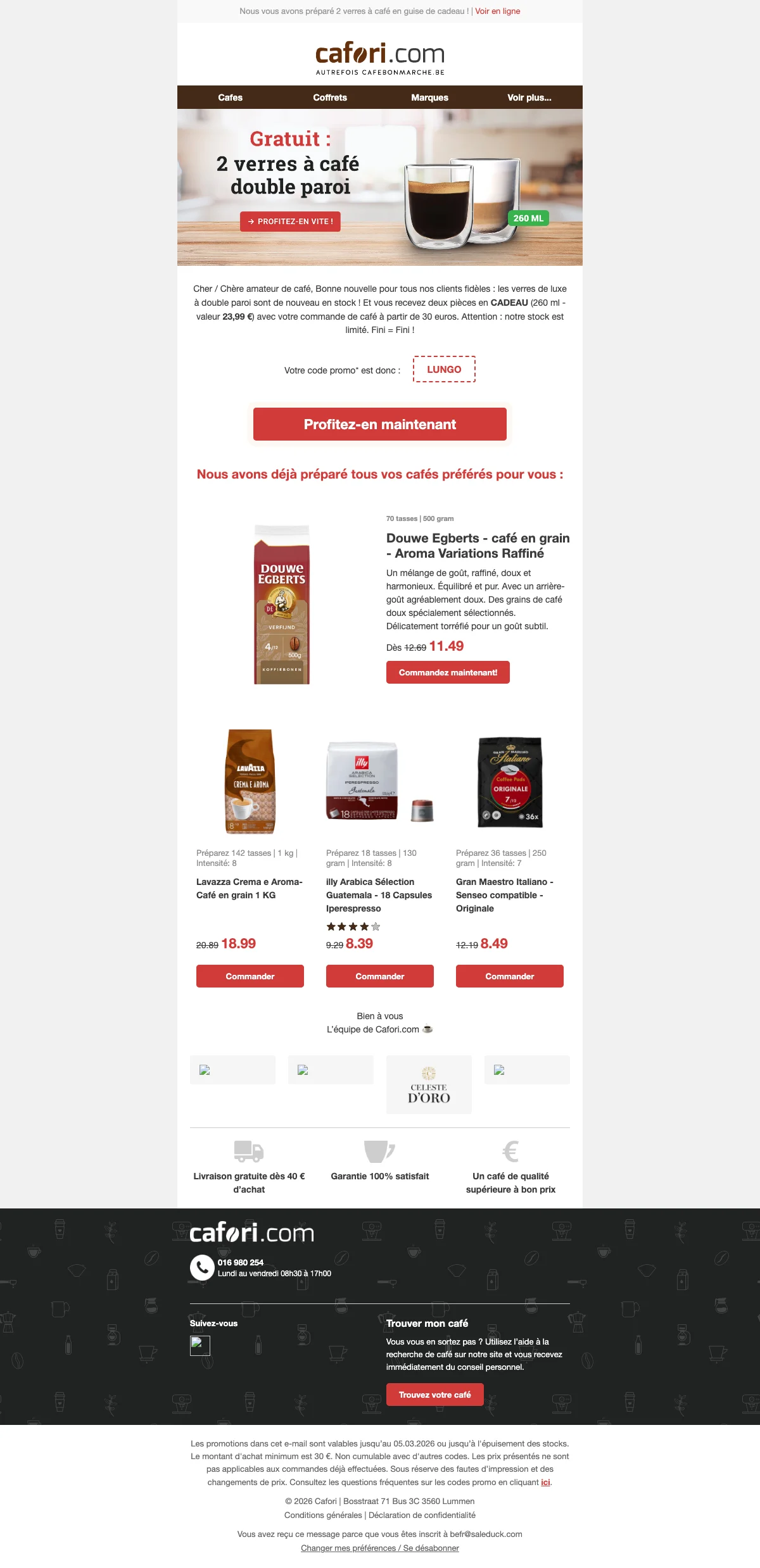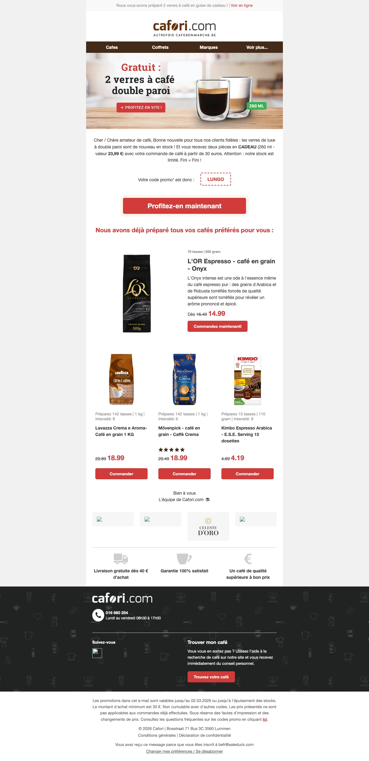 Cafori livraison gratuite : frais offerts sans minimum cette semaine