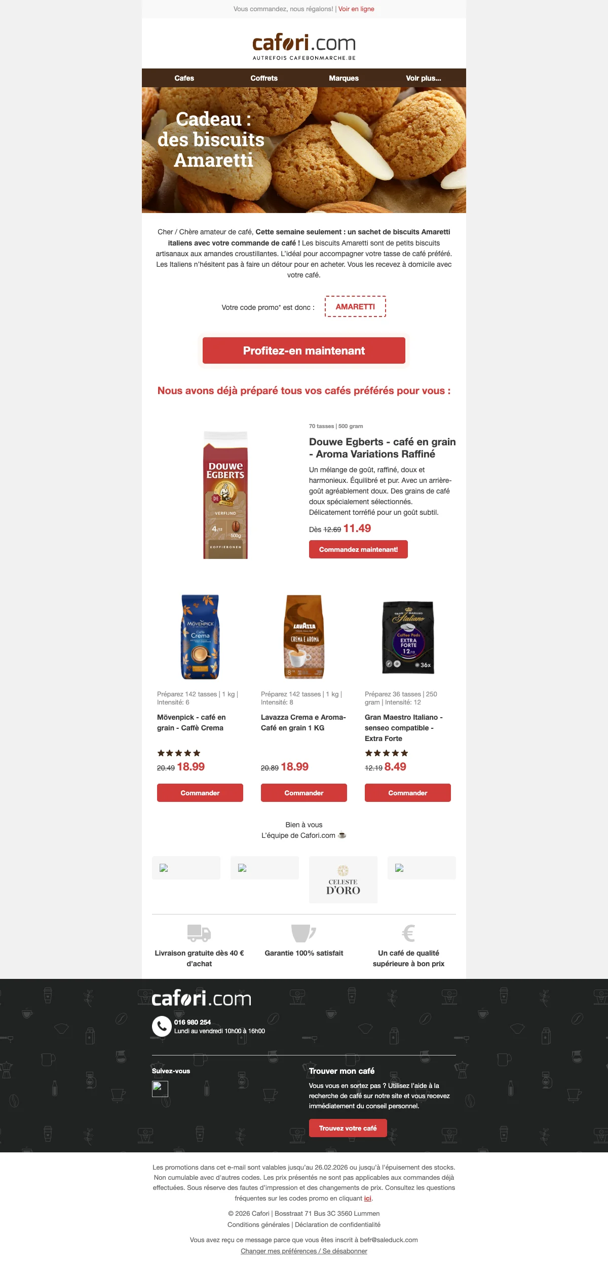 Cafori biscuits Amaretti offerts : sachet gratuit avec café