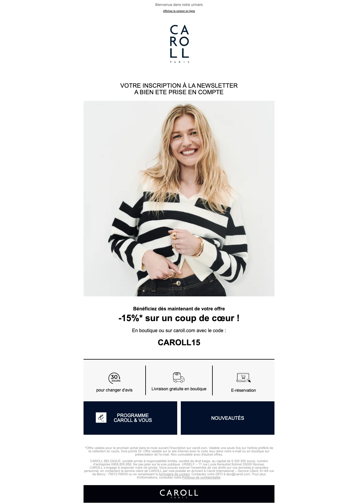 Caroll code promo 15% de réduction sur un coup de cœur