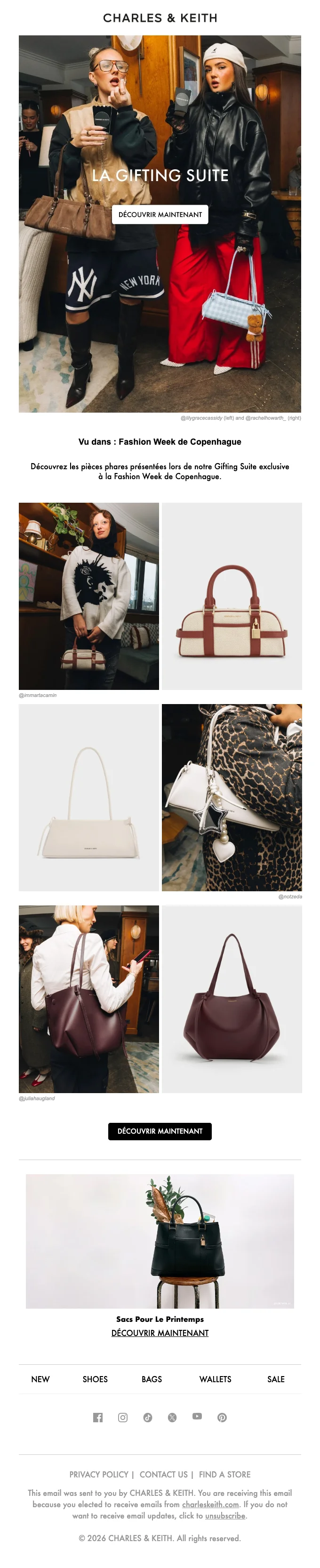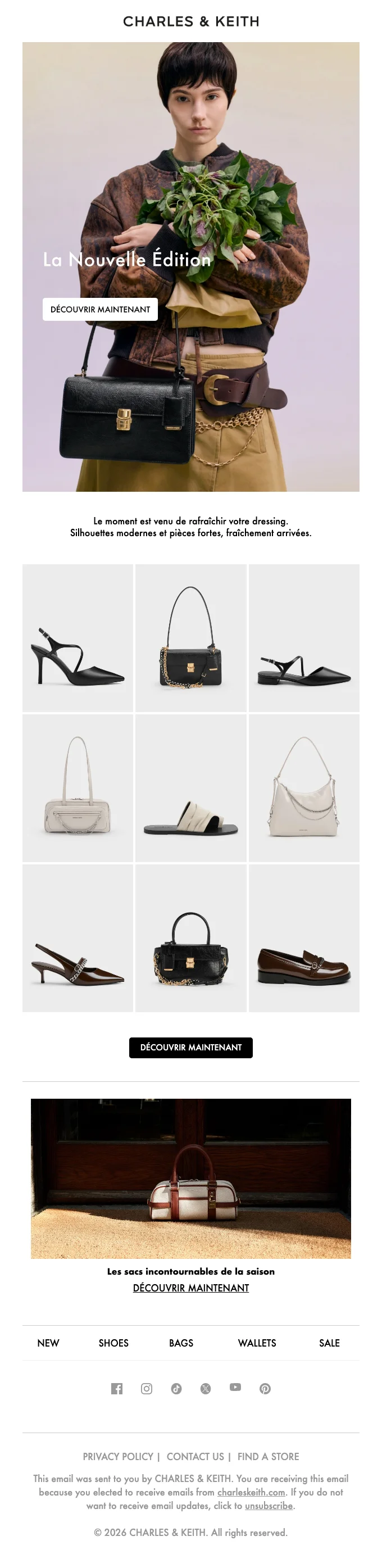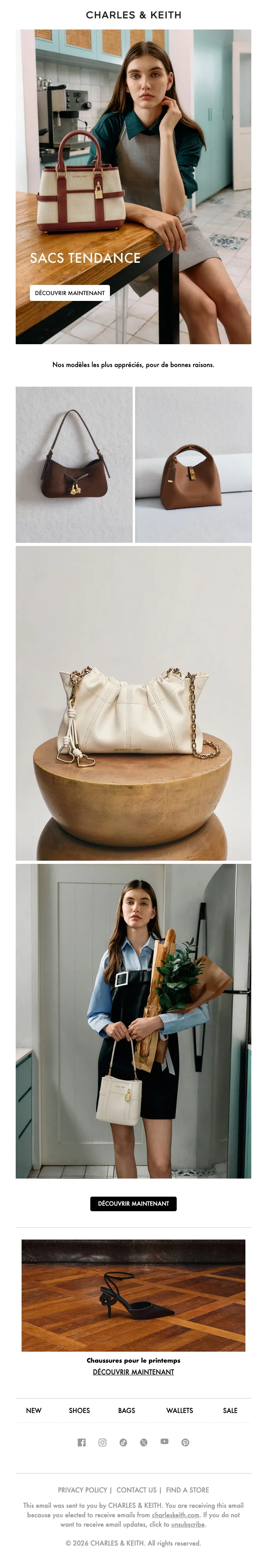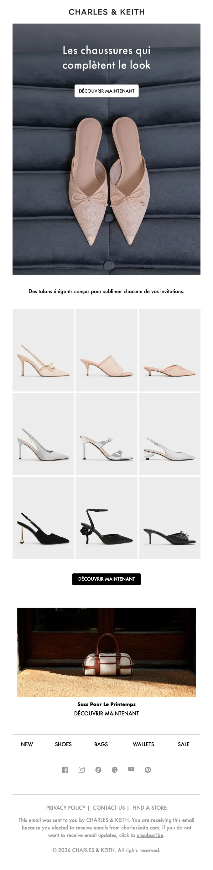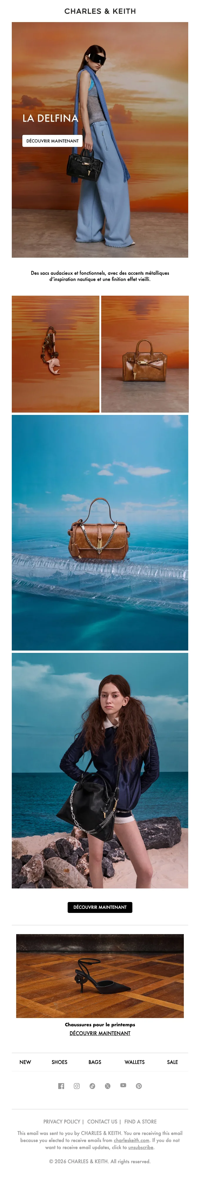 Charles & Keith abonnement newsletter : moins 10% sur votre commande