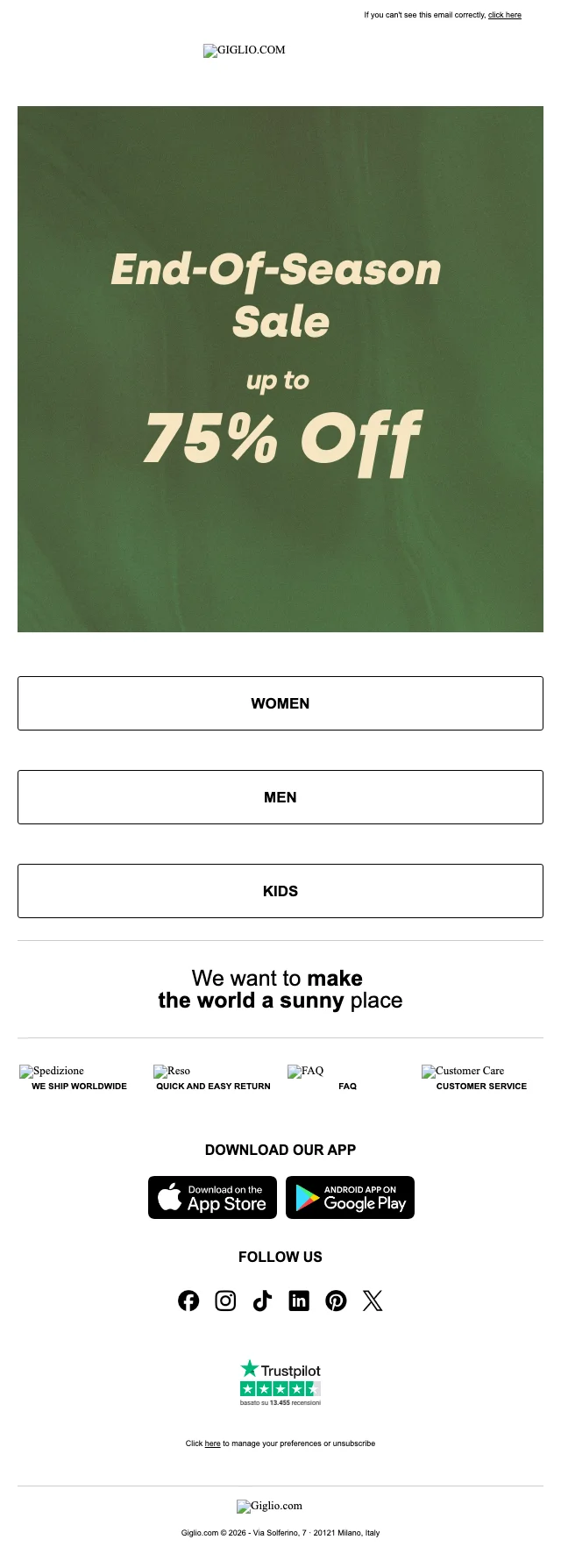 Giglio nouveautés : jusqu'à 75% de réduction sur marques de luxe