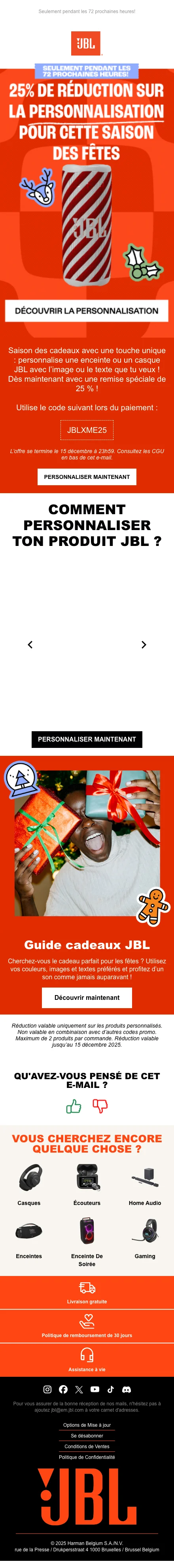 Code promo JBL BE : 25% de réduction sur produits personnalisés