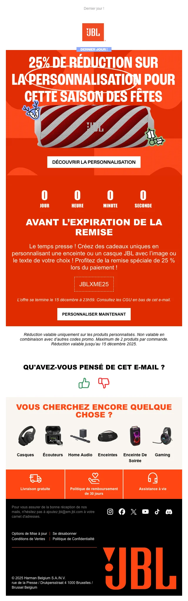 JBL produits personnalisés 25% de réduction pour la Saint-Valentin