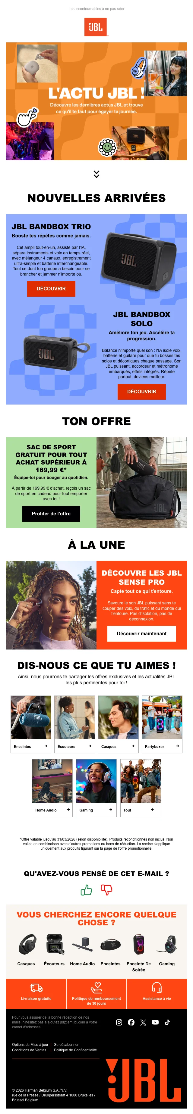 Profitez de jusqu'à 10% de réduction sur JBL belgique avec ce coupon !