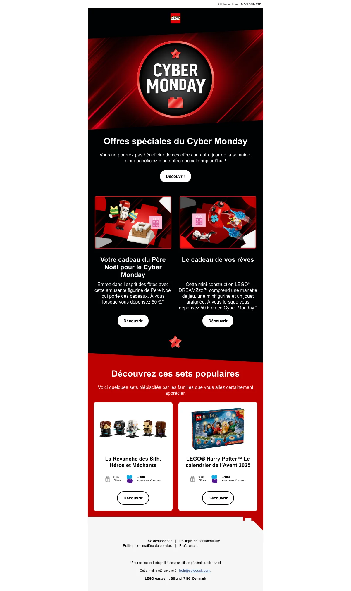 Lego Cyber Monday cadeau offert dès 50€ mini-construction gratuite