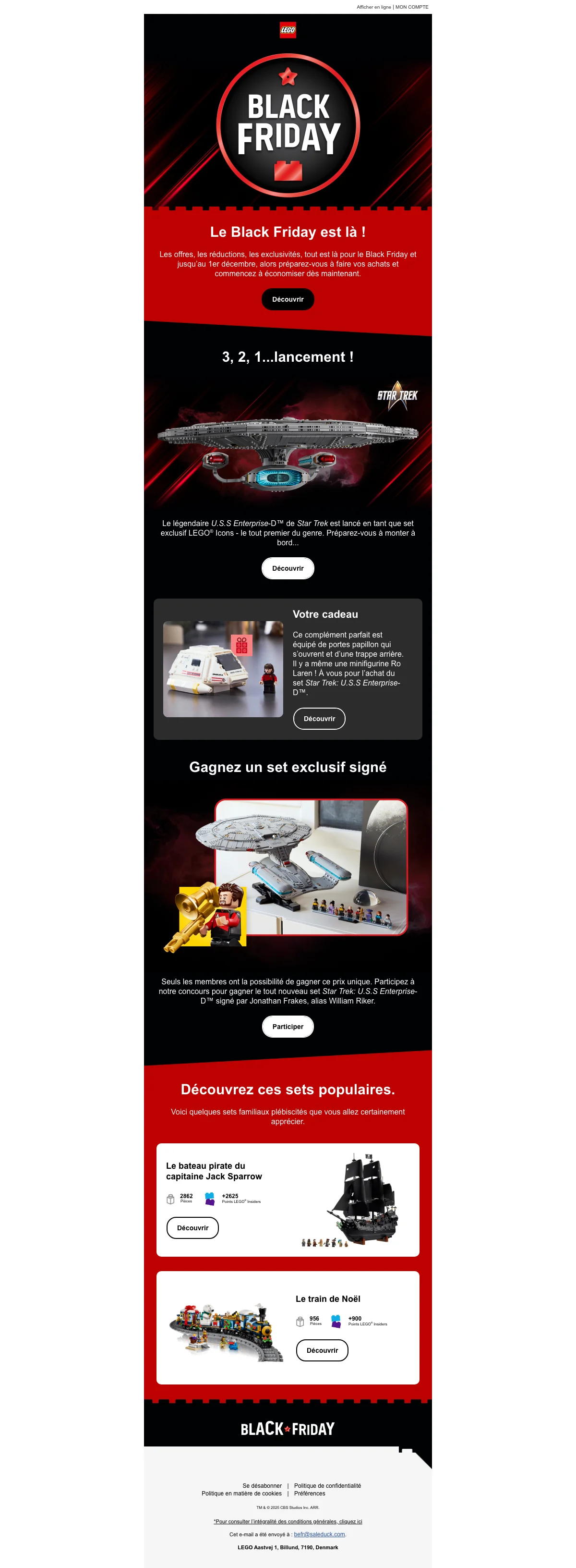 Nous surveillons en continu les offres de LEGO via le site officiel, les réseaux partenaires et les newsletters des boutiques en ligne. Les nouvelles promotions sont contrôlées automatiquement et manuellement afin d’en vérifier la validité.