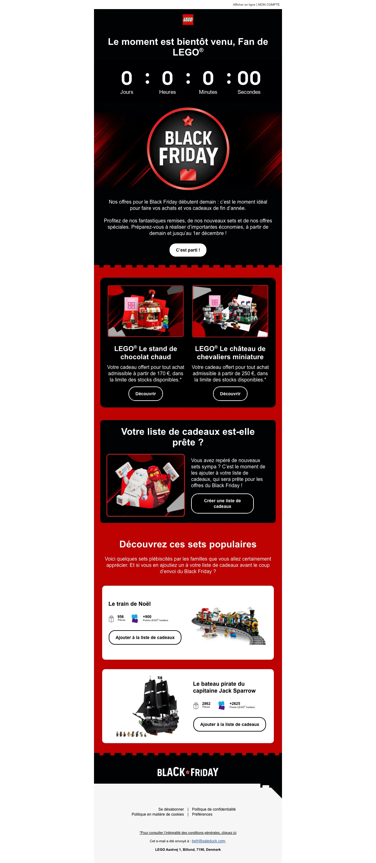 La journée du Black Friday, c’est aussi sur la boutique en ligne Lego. Pour ne passer à côté d’aucune des bonnes affaires disponibles pendant cette journée particulière, pensez à la noter dans votre agenda ! De nombreuses surprises vous attendent, pour le plaisir des plus petits, comme des plus grands.