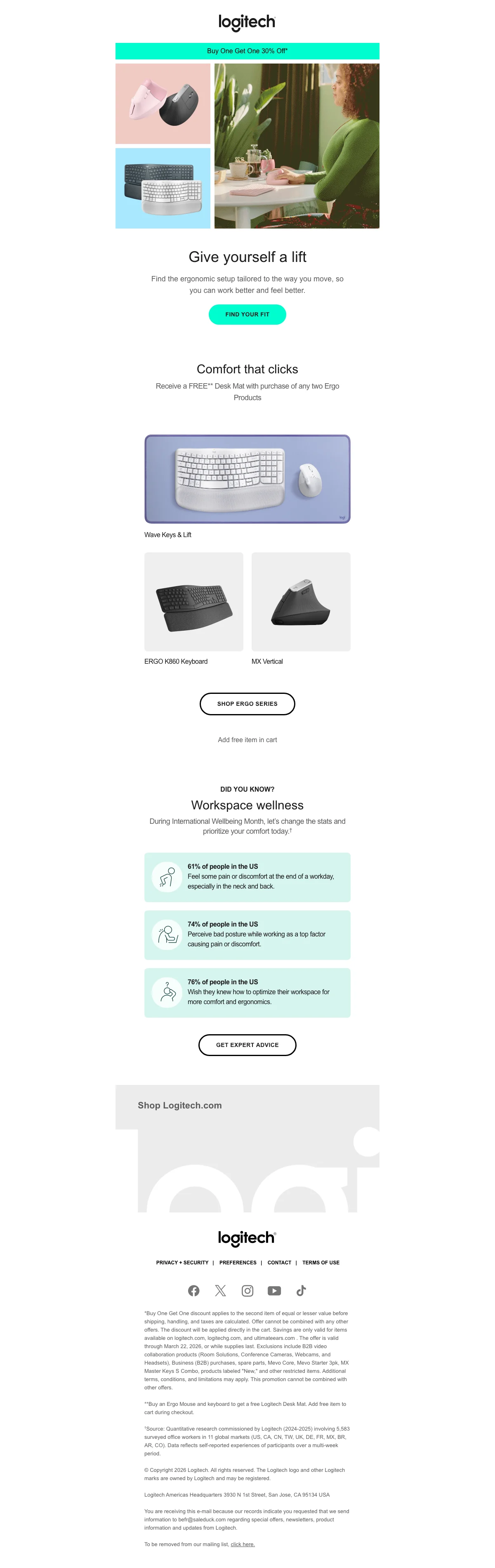 Le/la Logitech code promo est ERGO. Saisissez notre code pour Logitech 2026 dans le formulaire de paiement et bénéficiez de réductions exclusives. Logitech réduction de 10 EUR sur le clavier Ergo K860.