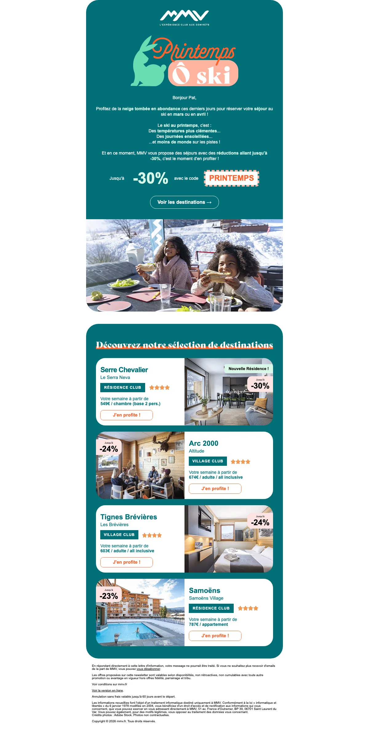 | PRINTEMPS | MMV printemps printemps au ski : jusqu'à 30% sur les séjours |