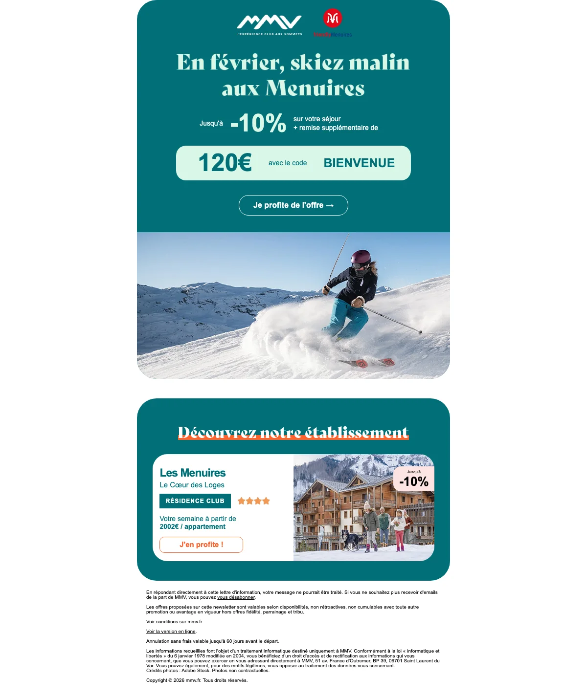 | BIENVENUE | MMV code promo : profitez de 120€ de remise supplémentaire sur votre réservation |