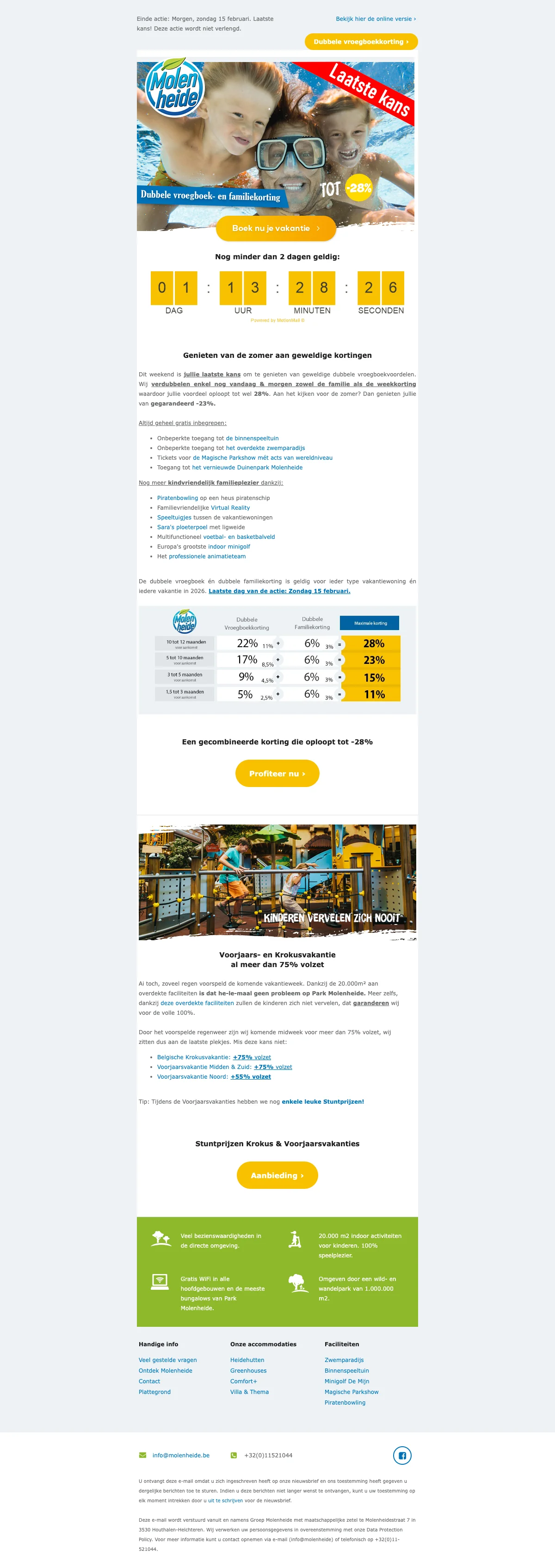 Molenheide offres : profitez de jusqu'à 15% de réduction sur vos réservations