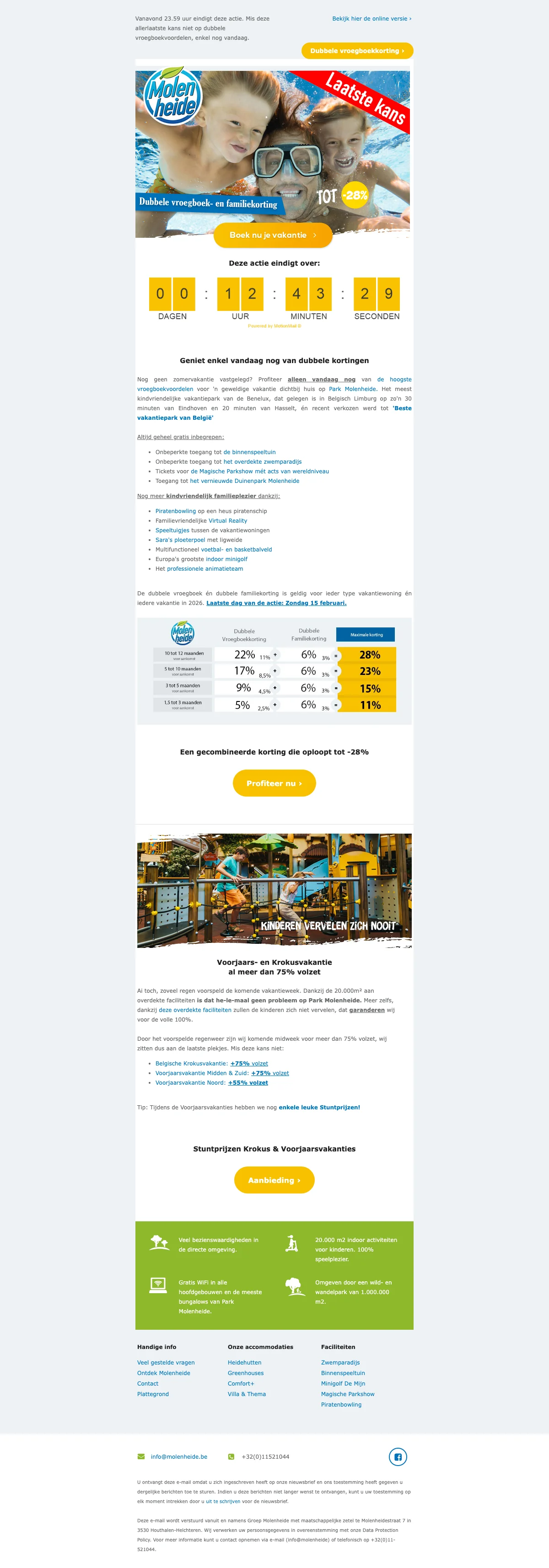 promo Molenheide : bénéficiez de jusqu'à 7% de réduction sur les vacances au Parc Molenheide