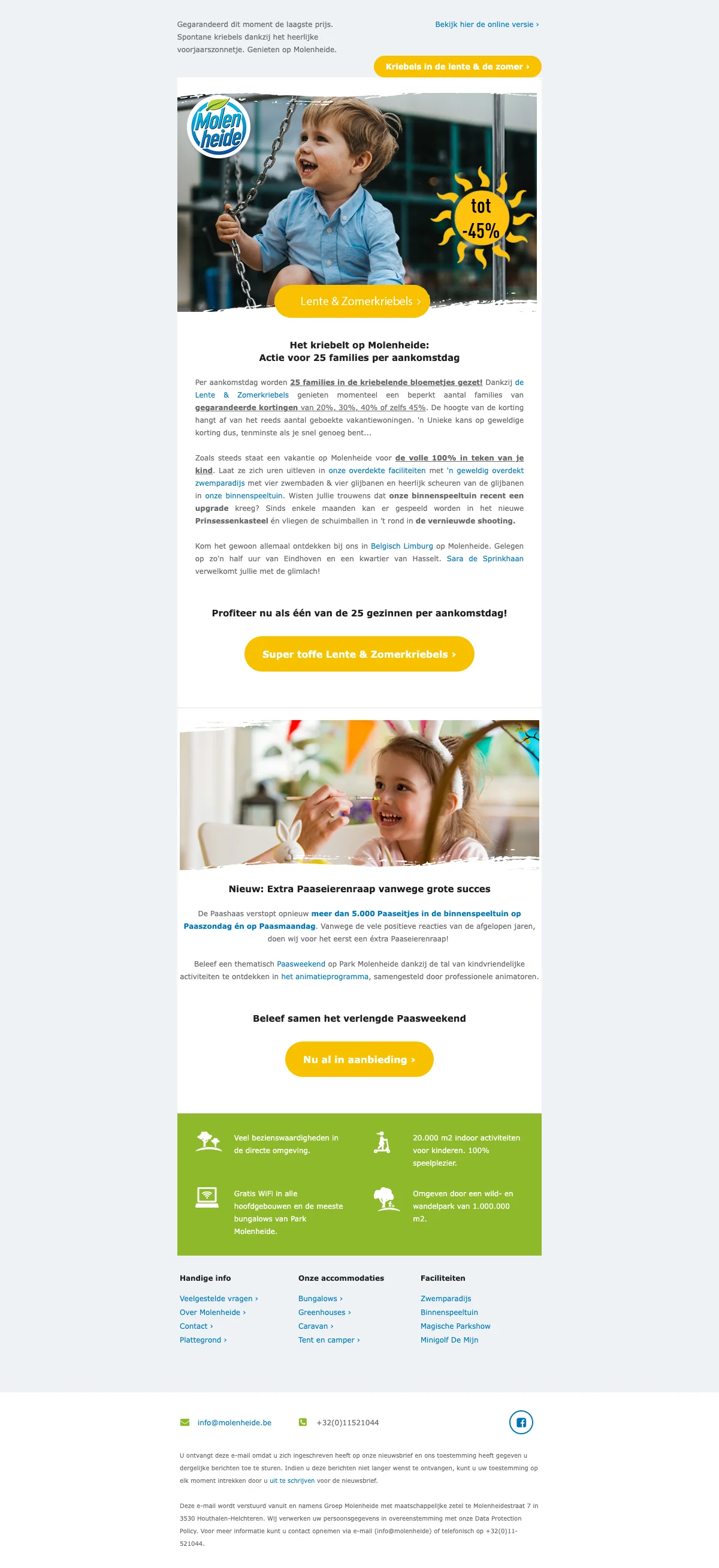 Molenheide printemps & été jusqu'à 45% - offre limitée 25 familles/jour