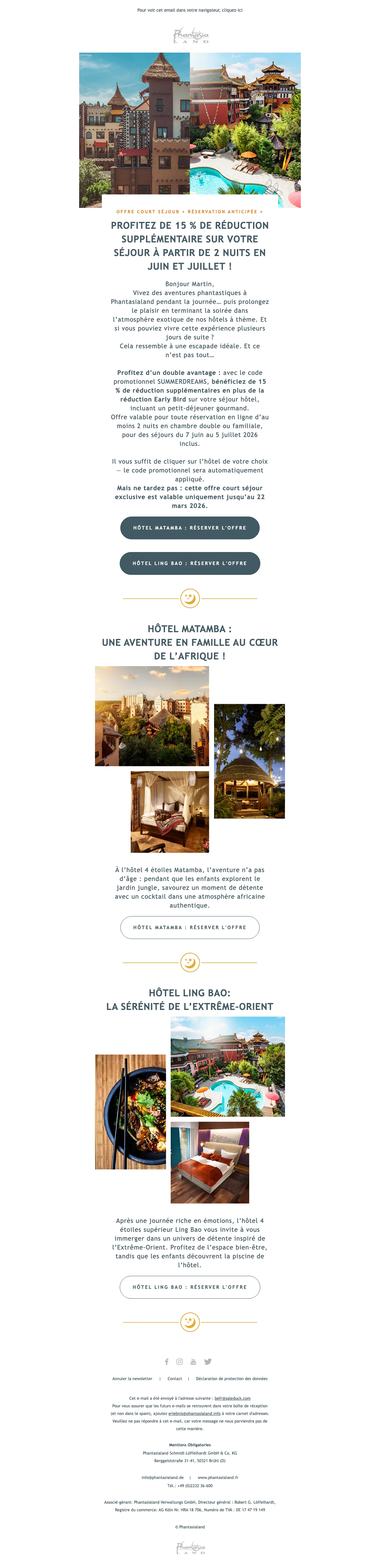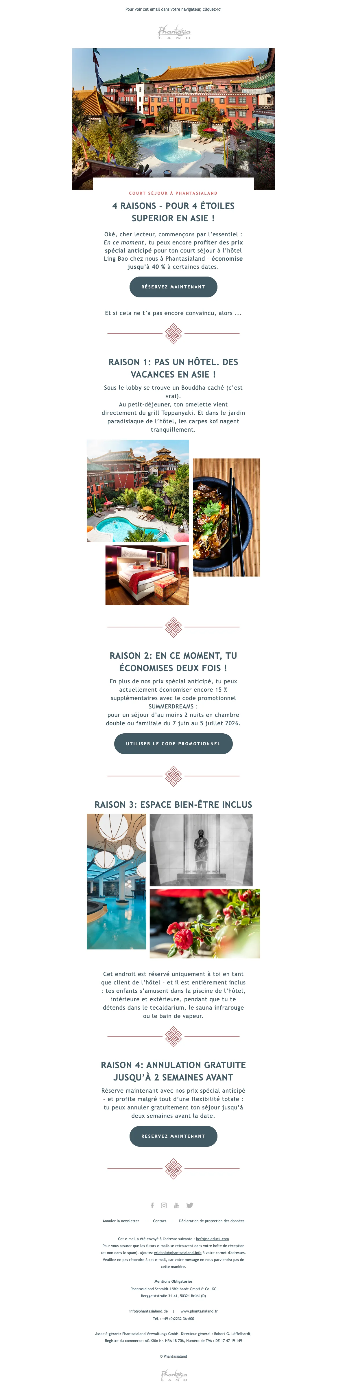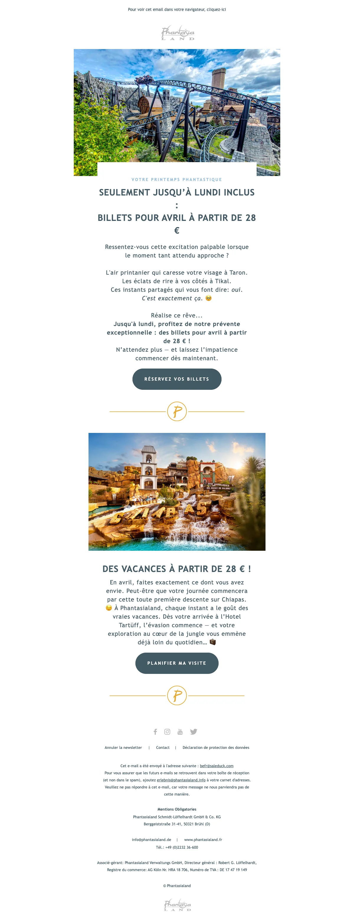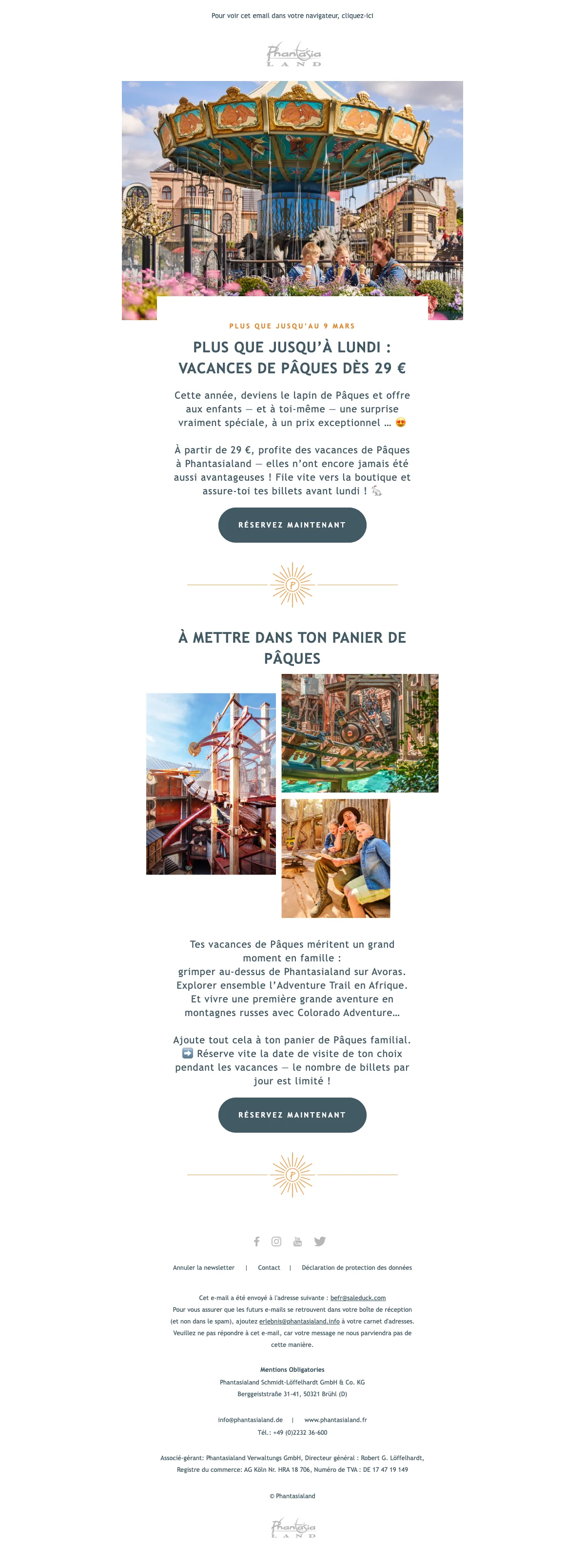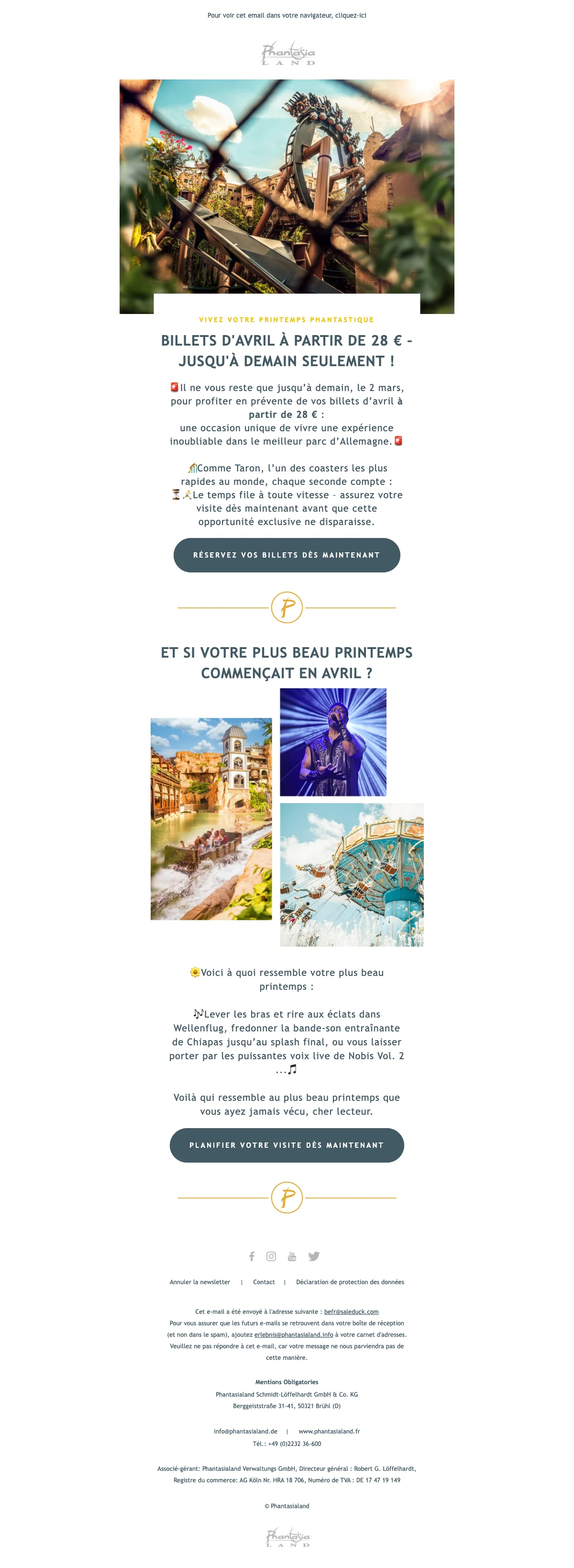 Les vacances arrivent à grande vitesse et avec elles les beaux jours d'été. Ne perdez pas de temps à tergiverser et réservez dès maintenant votre journée à Phantasialand ! Ne cherchez plus dans quel parc emmener votre famille ou vous rendre à deux pour un moment en amoureux, avec les offres soldesduck.be, nous vous adressons les dernières promotions et codes promotionnels vous permettant de profiter du meilleur parc d'attraction à prix réduit. Pour toute la famille, il suffit de vous rendre sur soldesduck pour être au courant de toutes les offres en nouveauté.
