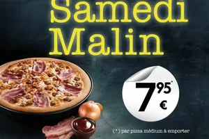 Chaque samedi, tu peux te régaler avec toutes les pizzas médium à emporter pour seulement 7,95€. C'est l'occasion parfaite de savourer une délicieuse pizza tout en profitant d'un prix imbattable. N'oublie pas que cette offre est valable uniquement dans les restaurants participants.