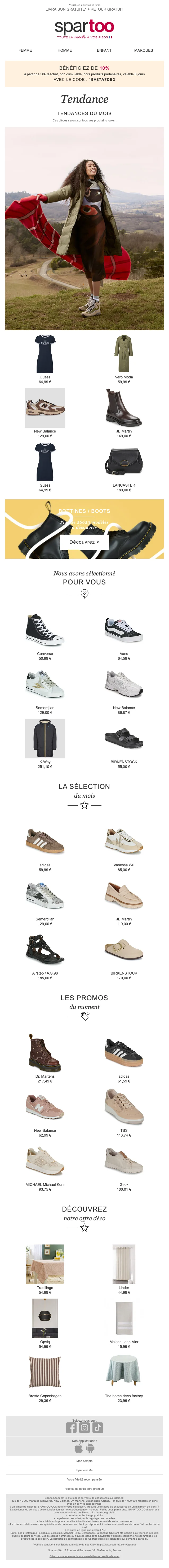 Toujours à la recherche de la dernière paire de chaussures tendance ou de vêtements de marque difficile à obtenir sur le marché ? Même en cherchant en ligne vous avez des difficultés à trouver le modèle que vous voulez ? Ne perdez pas espoir vos vêtements et chaussures de marque sont très certainement sur la boutique en ligne Spartoo !