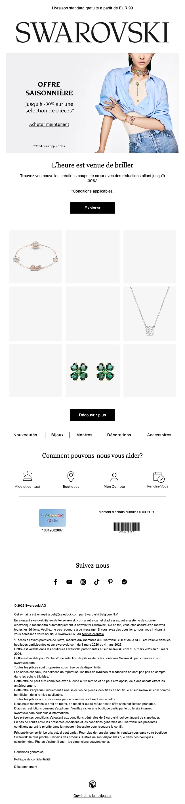 | WELCOME | code promo Swarovski : 10% de réduction sur votre commande |
