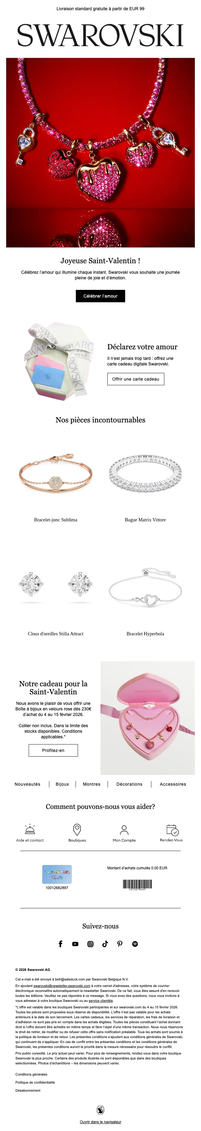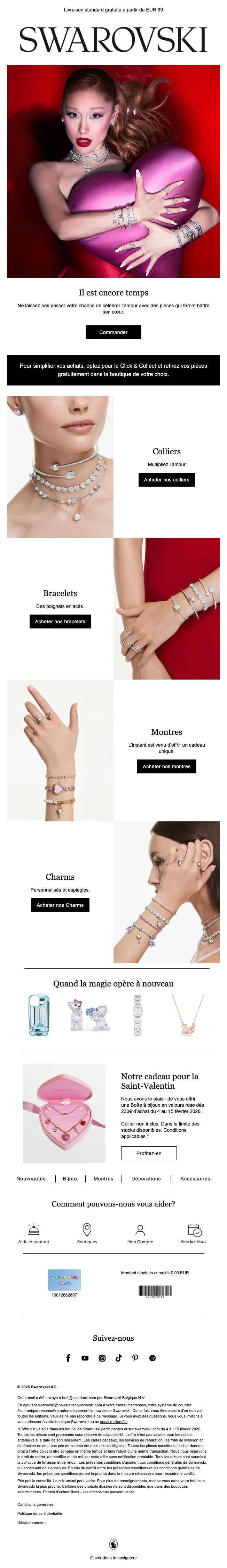 Swarovski belgique : livraison gratuite dès 75€ de commande