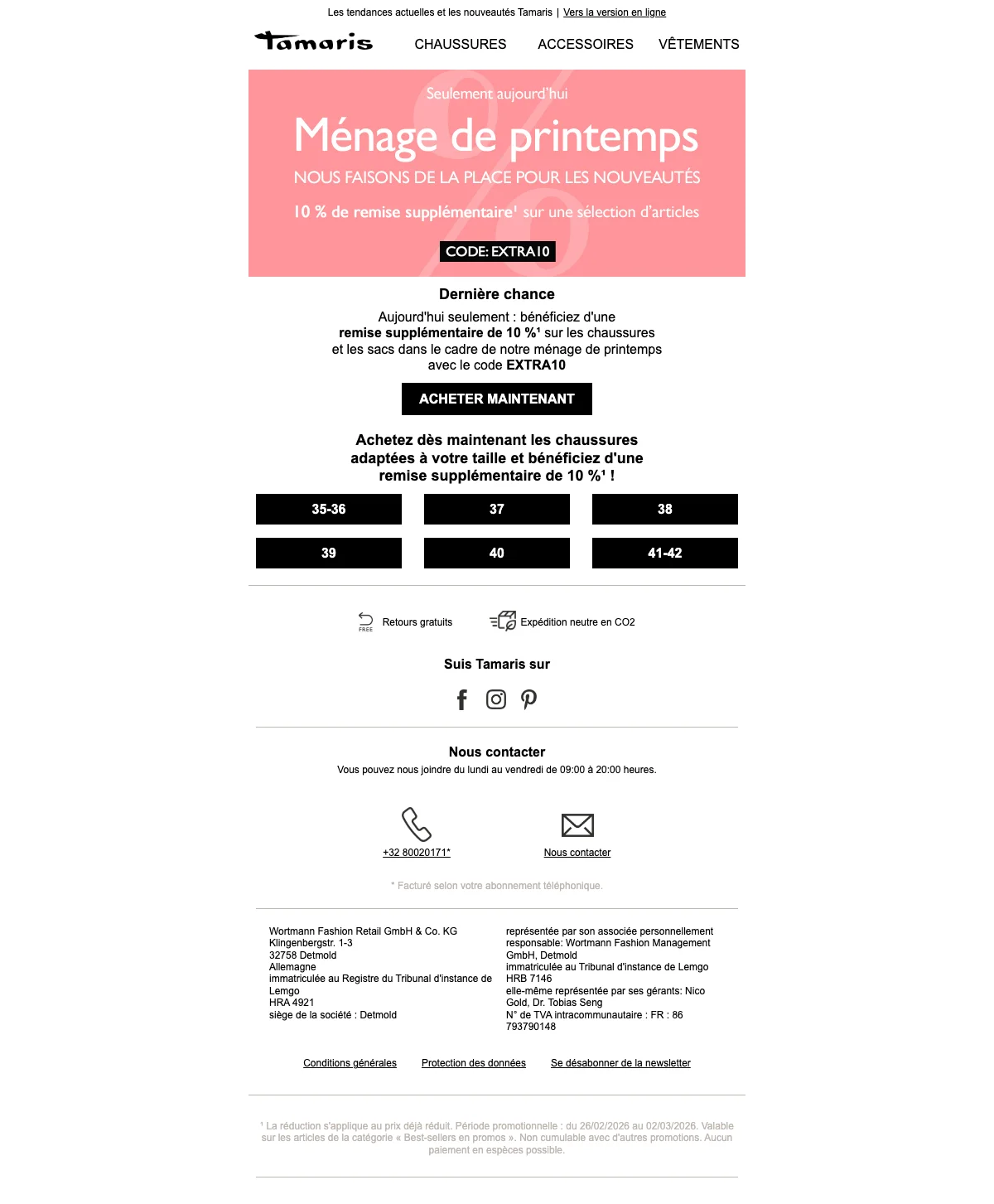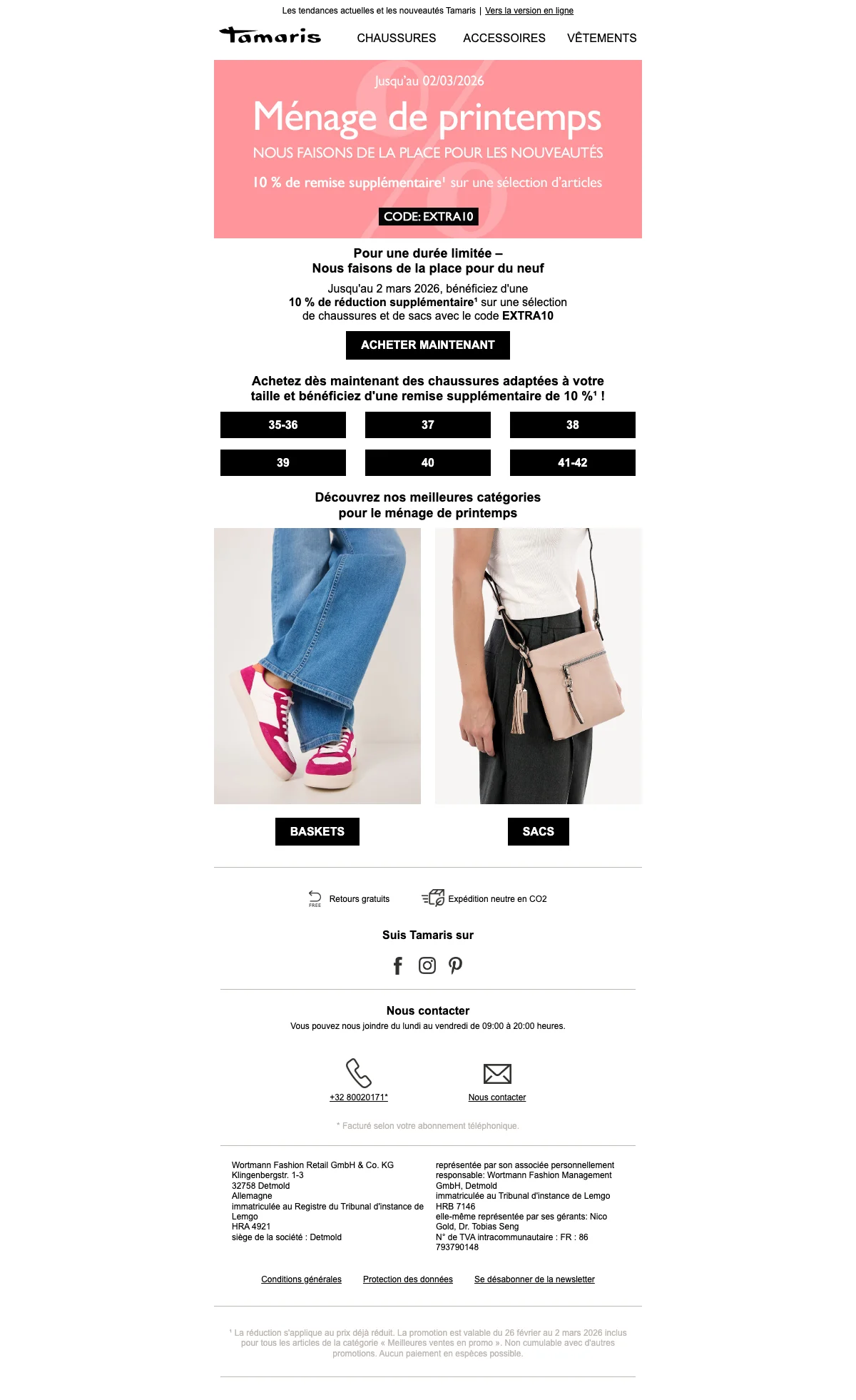 Tamaris ménage de printemps 10% supplémentaire sur chaussures et sacs