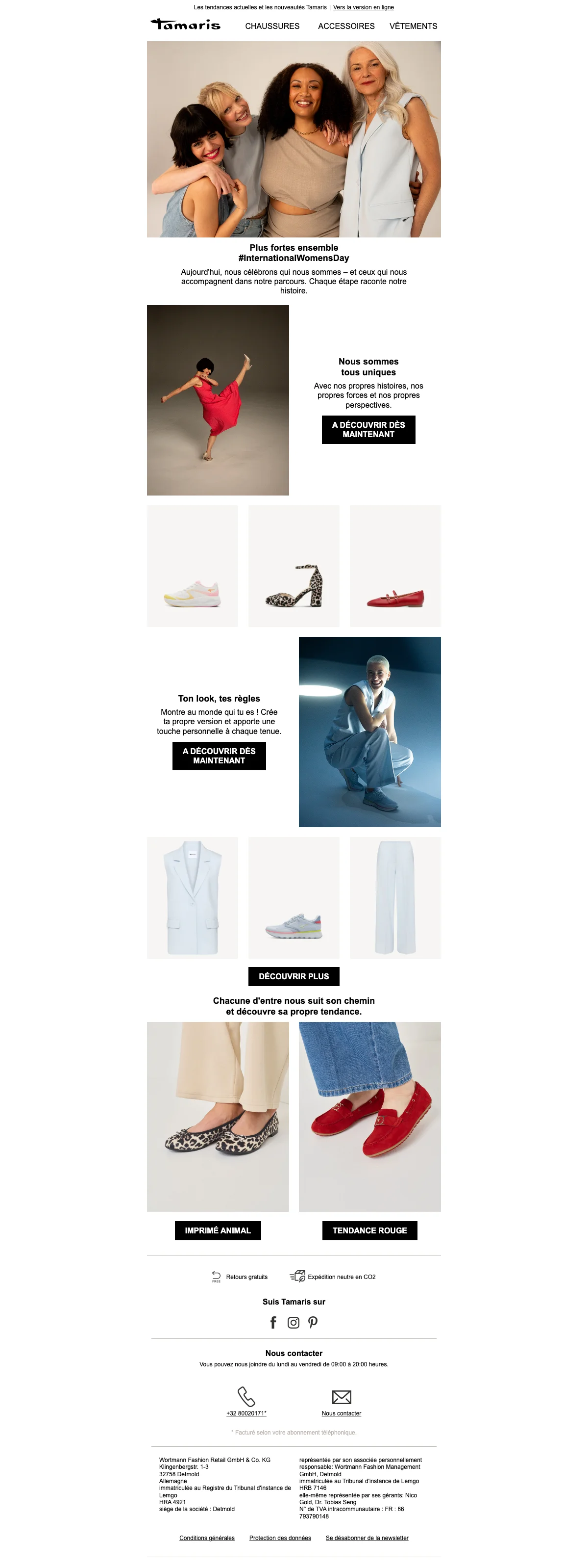 Profitez des retours gratuits chez Tamaris belgique