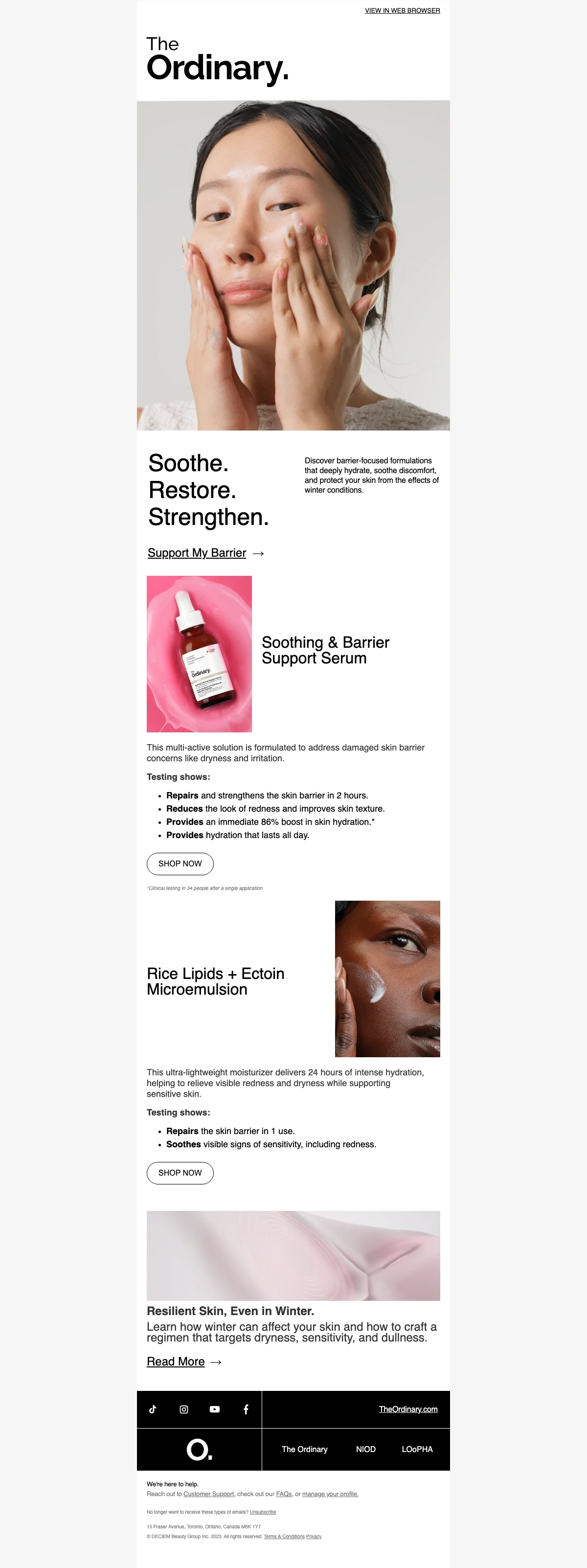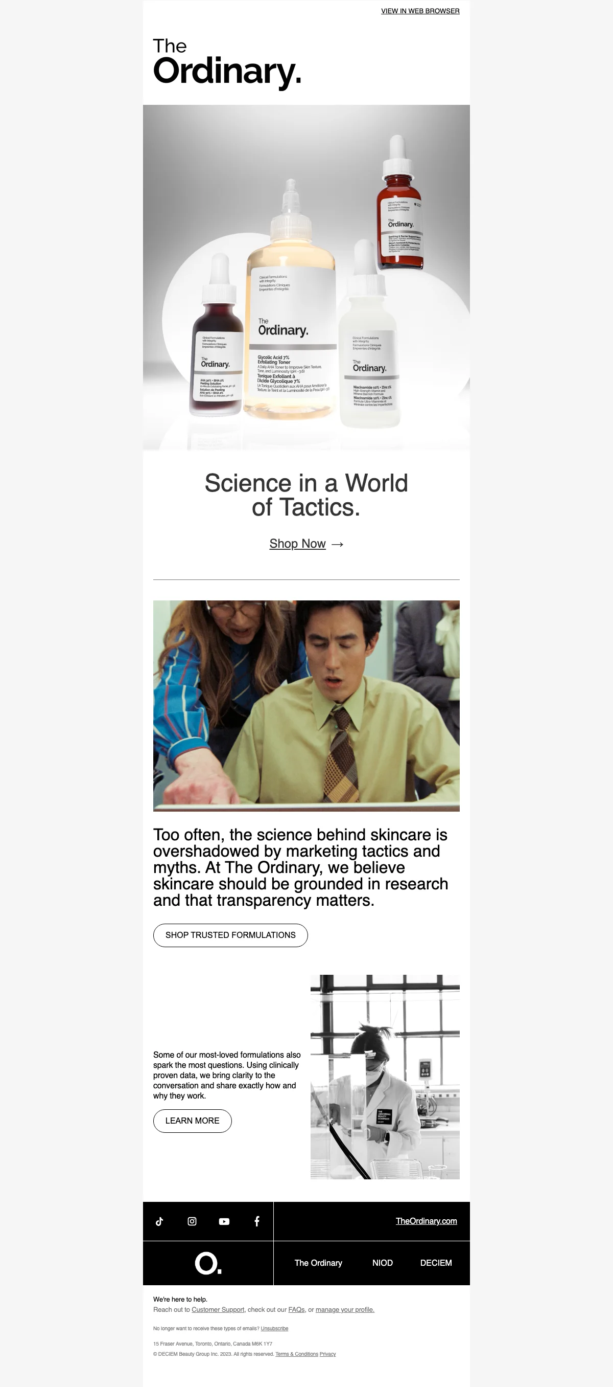 The Ordinary propose des produits de soins de la peau formulés de manière clinique avec des ingrédients de haute qualité et efficaces, soutenus par des recherches scientifiques. Ils mettent l'accent sur la transparence et l'intégrité dans leurs formulations, offrant aux clients des solutions de soins de la peau simples et directes.