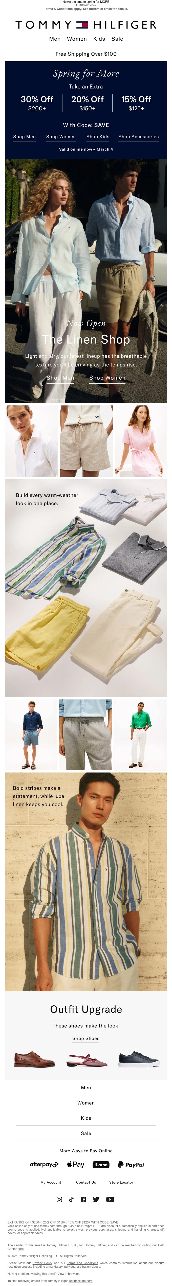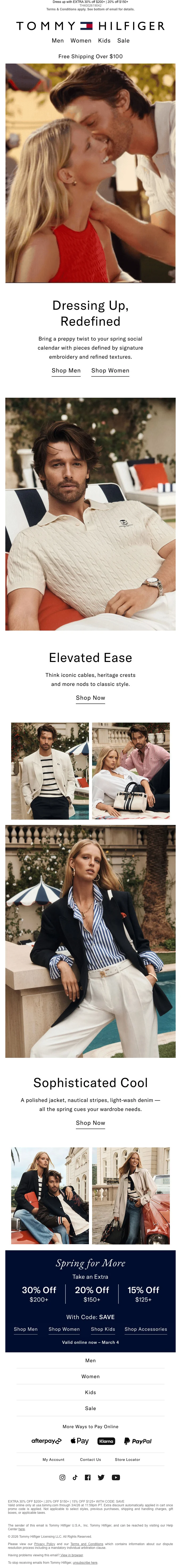 Tommy Hilfiger printemps 30% de réduction dès 200 $ — 20% dès 150 $