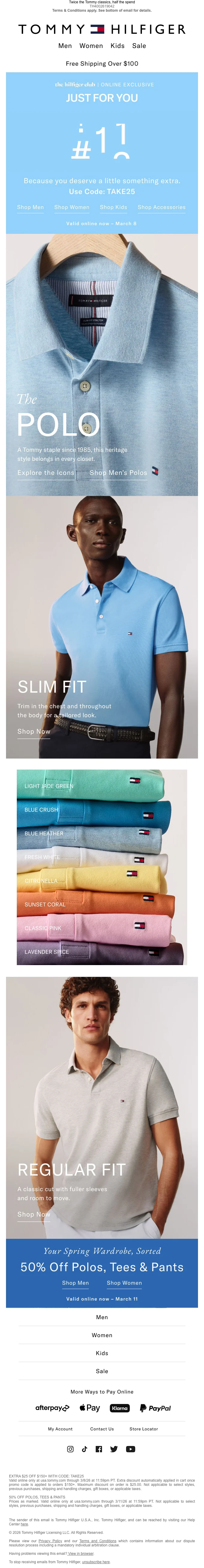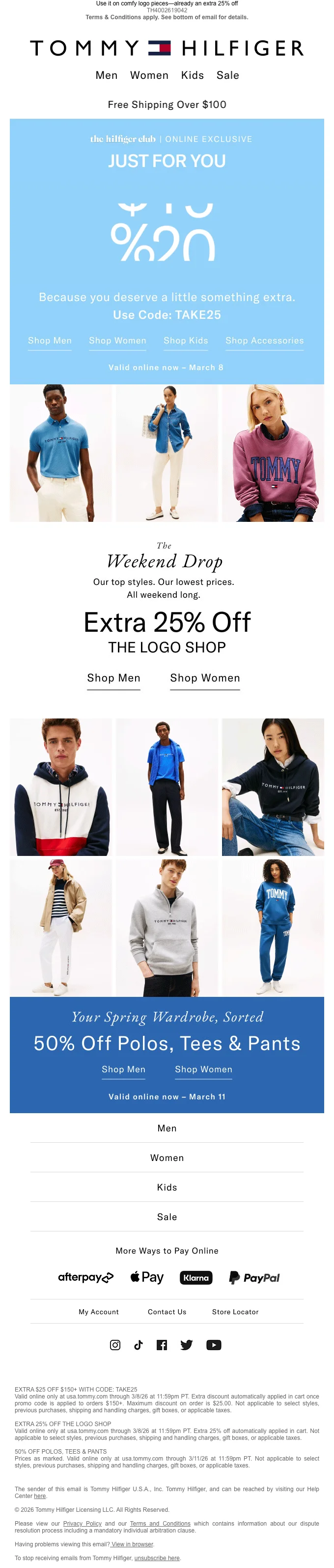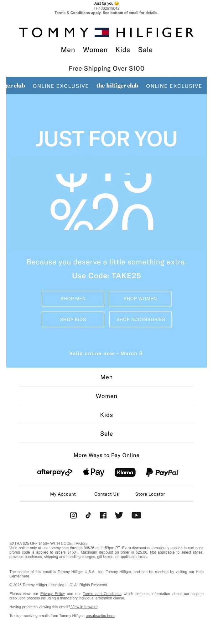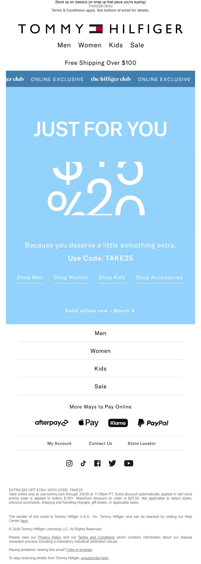 Tommy Hilfiger code promo 25$ de réduction dès 150$ d'achat