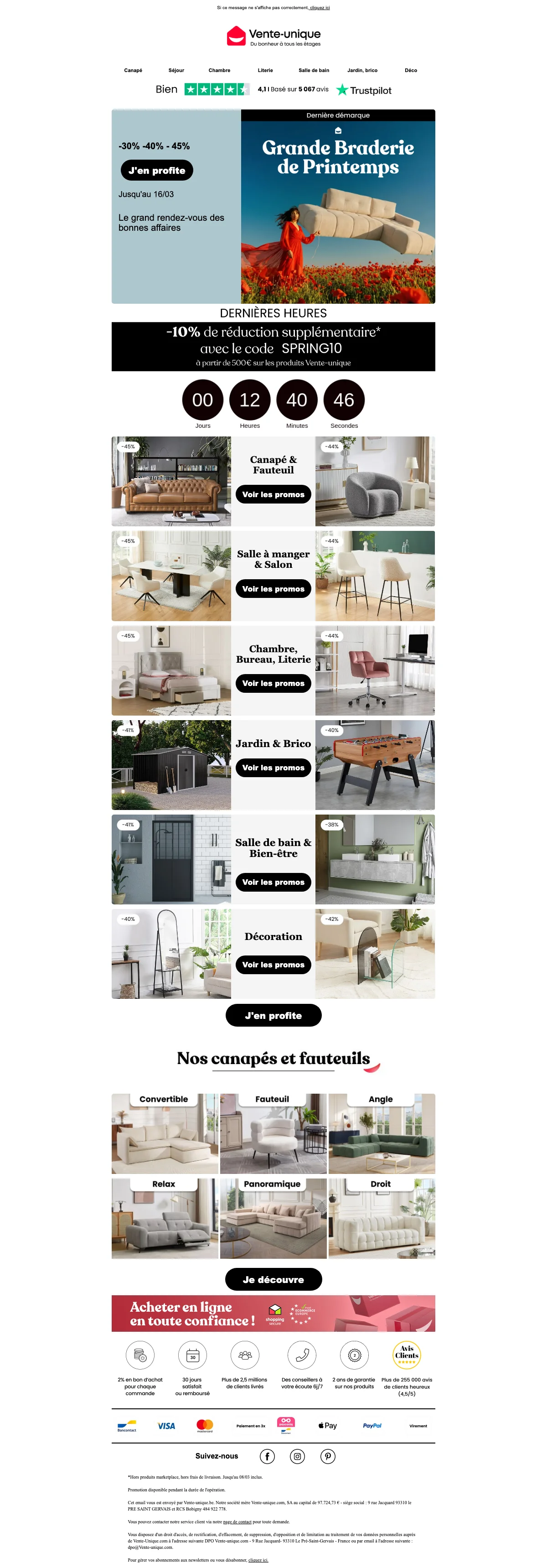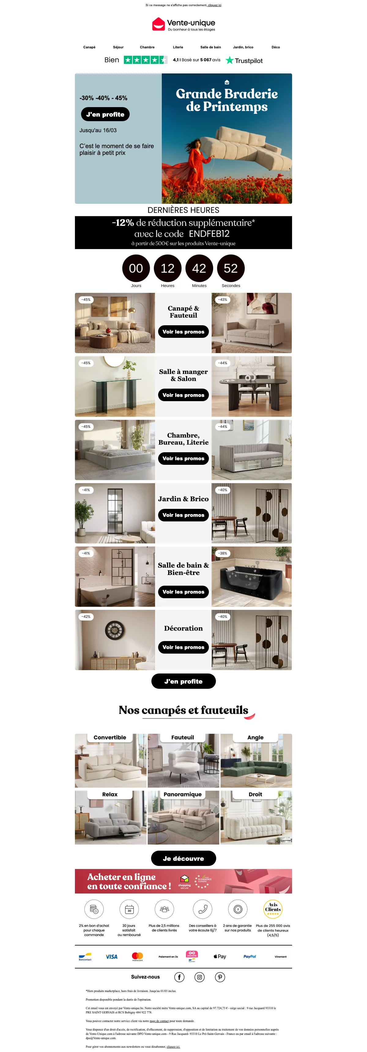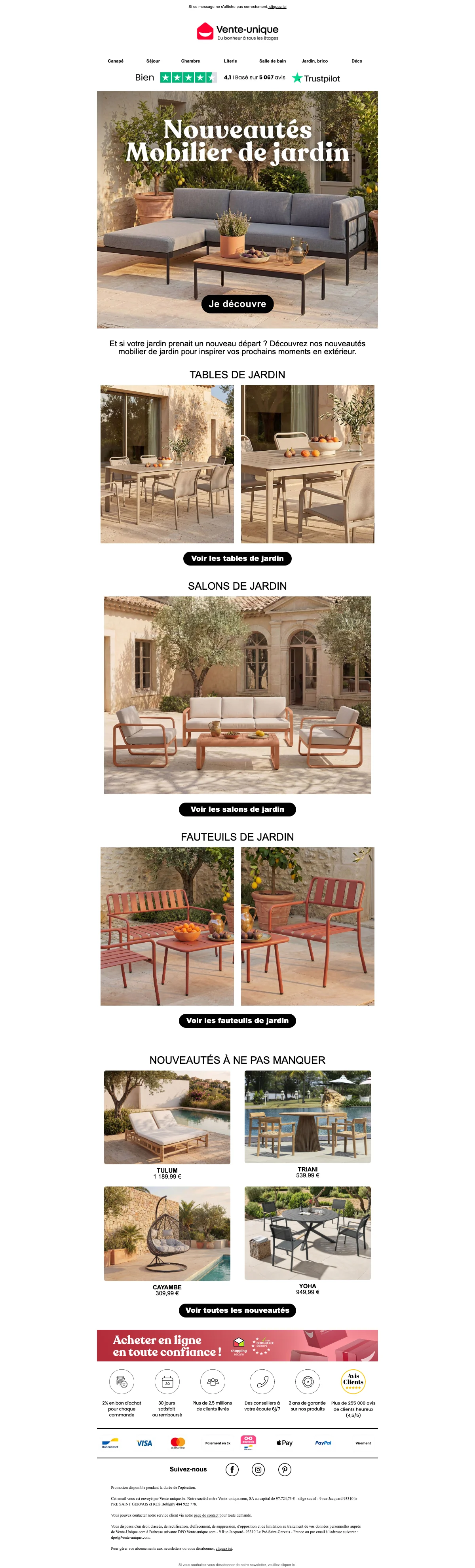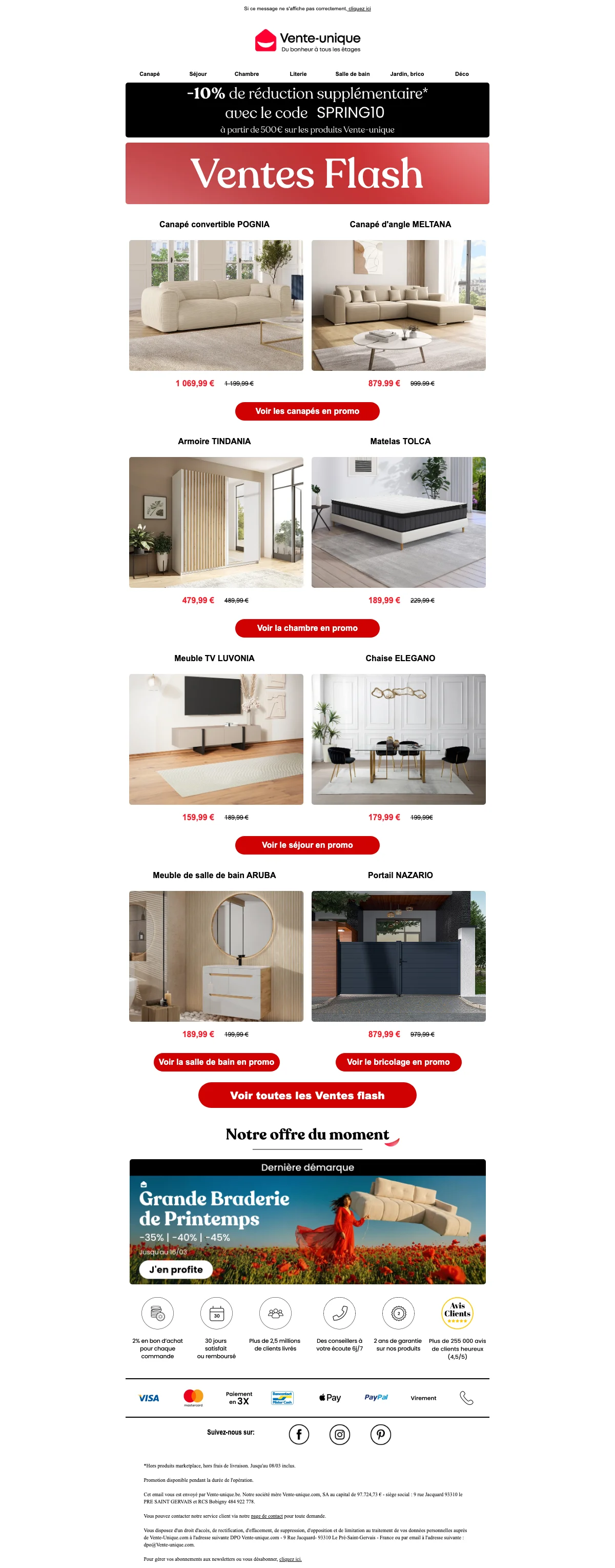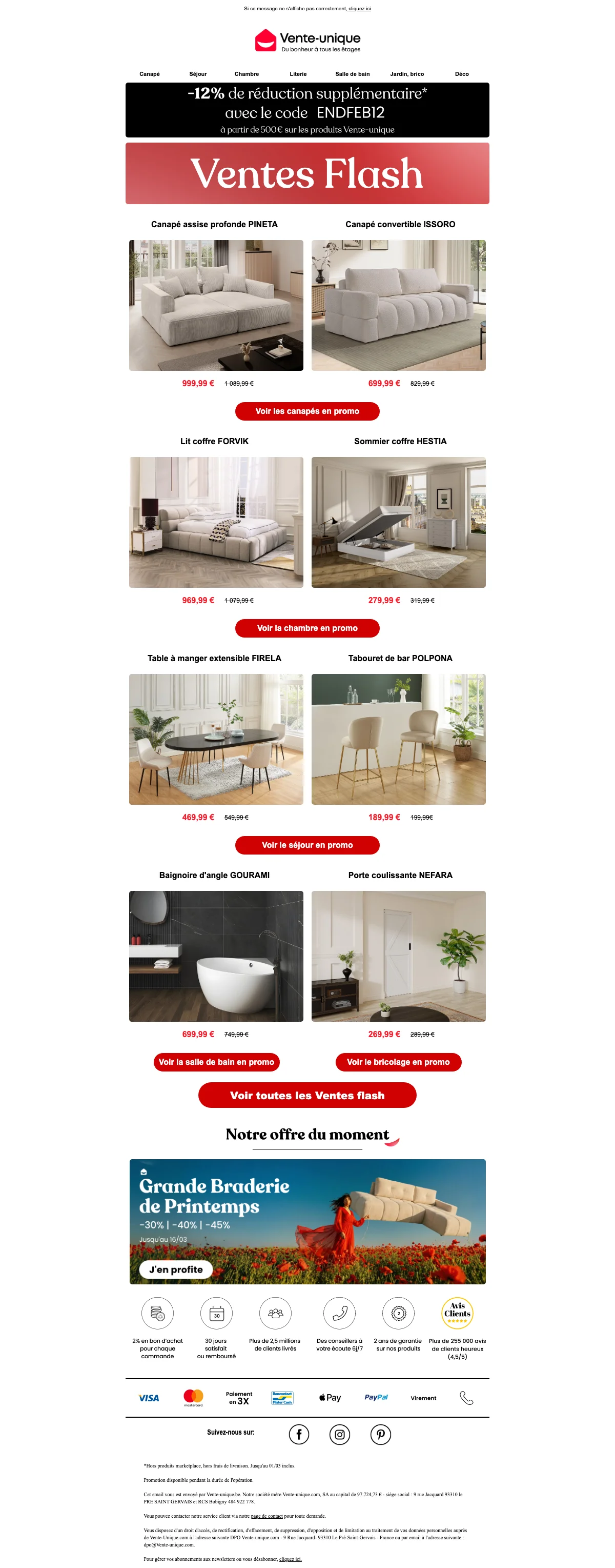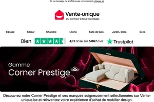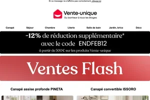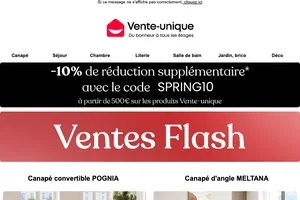 Vente Unique inscription newsletter : 20€ offerts dès 199€ d'achat